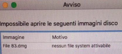 file .dmg nessun file system attivabile