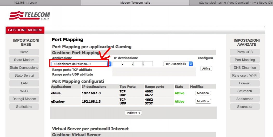 Ho aperto, chiuso, abilitato, autorizzato qualunque cosa; venendo qui ho scoperto che con mac bisogna aprire tre porte e non due! Purtroppo il mio cornutissimo modem č leggermente diverso...