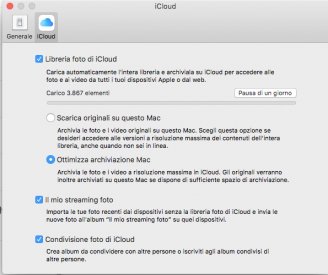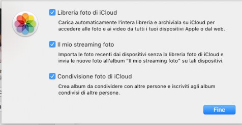 Su preferenze foto > iCloud ho trovato le