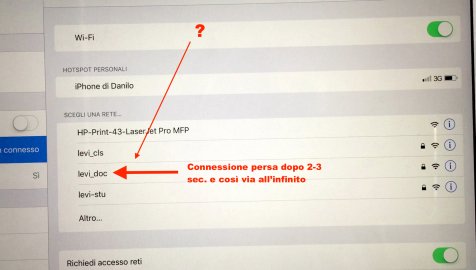 [SIZE=3]Problema stranissimo: l'iPhone e iPad dopo l'aggiornamento a iOS e 11 non prendono più la mia rete di lavoro, che prima funzionava benissimo. La cosa strana è che prendono le altre reti senza problemi (compresa quella di casa) e il mio MacBook al lavoro si collega senza problemi.. La rete di lavoro si trova in in un edificio con altre 2 reti nello stesso server riservate; gli altri i colleghi con Android non hanno problemi, l'amministratore di sistema non ci capisce niente. In breve, iPhone e iPad prendono la rete per qualche secondo (spunta verde) e poi la rete torna in basso e così via all'infinito. Ho trovato le soluzioni solite, tipo dissociare rete, ripristinare reti, eccetera. Fare il downgrade a iOS 10, che funzionava benissimo, è una rottura: il fix di iOS 10.0.1. non ha risolto niente. Mi toccherà aspettare iOS 11.1? IPhone e iPad non hanno problemi con la rete di casa e con tutte le altre reti.[/SIZE]