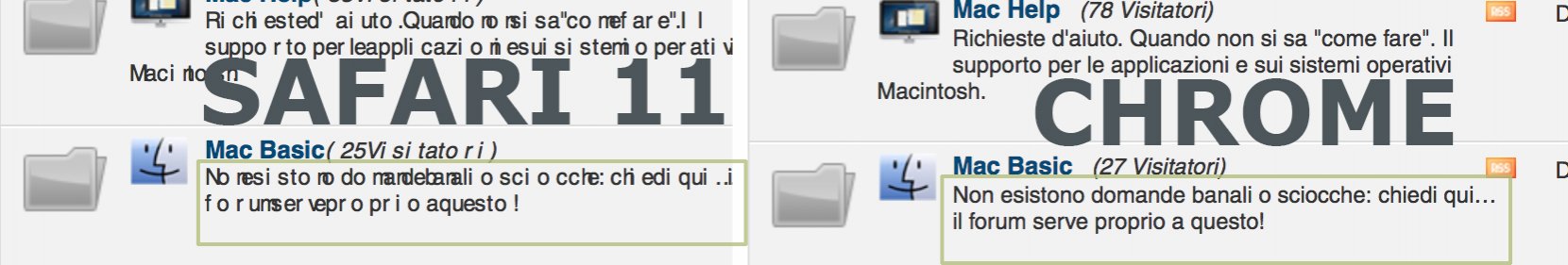 Grazie per la precisazione. In questo modo “resta agli atti” per i prossimi utenti che l’installazione di font aggiuntive può comportare conflitti anche per la visualizzazione di alcune pagina con Safari. :) Alla prossima.